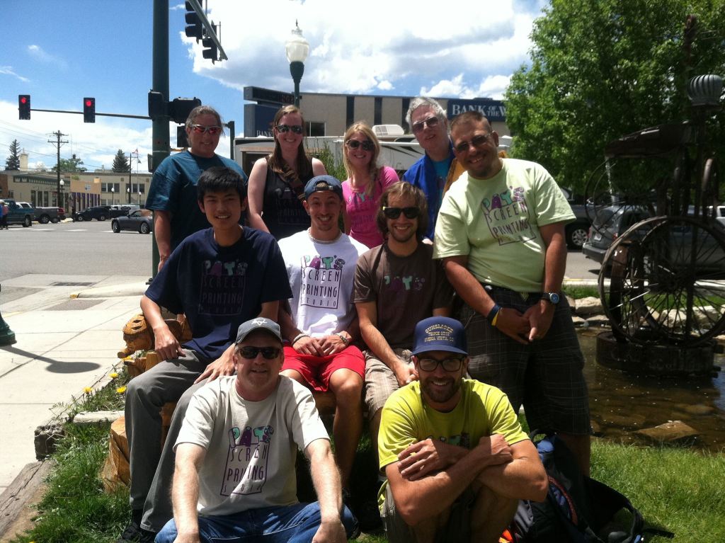 My first day at Pat’s Screen Printing was as a volunteer. Pat was headed for Montrose to have her gall bladder removed, and her only employee needed to print a big job and was worried about having to deal with customers. I was in my three-month “career” in airport security, which at the Gunnison airport meant lots of time off, so I volunteered to come in and answer the phone and fold shirts.