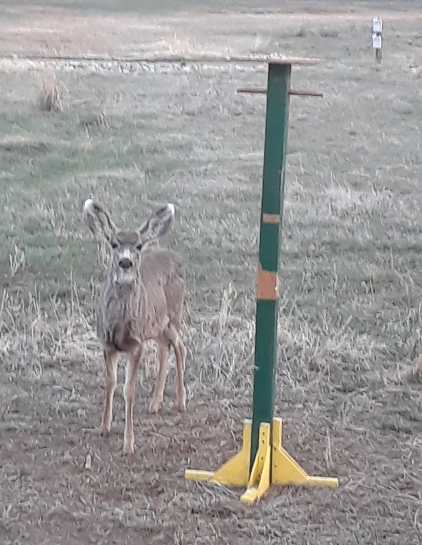 This worked until Friend Wind came calling. And when I say ‘friend,” I mean “friend to all deer,” because Wind repeatedly knocked the feeder off the bird post onto the ground, where the deer could once again access the contents.