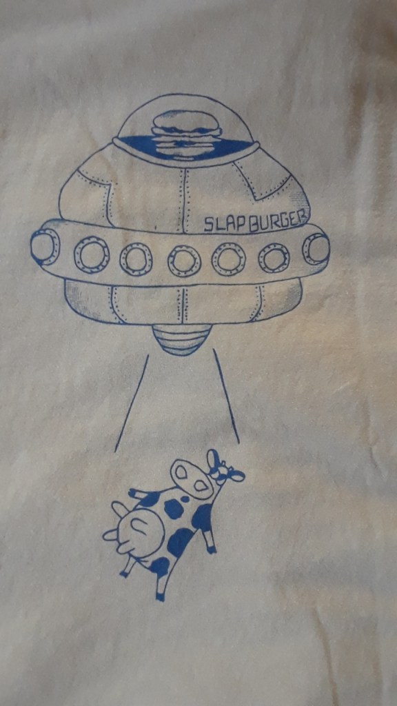 We ended up driving Elk twice, because I wanted to patronize one of our newest customers, Slap Burger (don’t tell any of our other customers, but his shirt design is my favorite), and we didn’t know where he was located. So we got a double look at the throngs thronging about, the restaurant street “patios” overflowing and people willing to walk six blocks up one side and down the other — as opposed to Gunnison, where people start driving if their next destination is two blocks away.