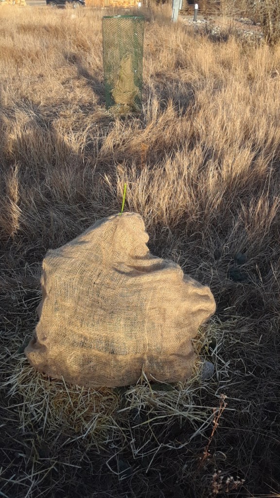We felt quite virtuous as we protected our aspens and crabapples, but Kara warned that deer mostly seem to go after evergreens, leaving the middles looking sparse and sickly.